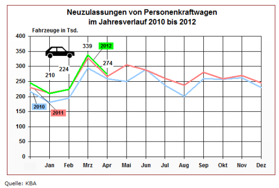 Der Neuwagenmarkt in Deutschland ist weiterhin im Plus. Mit 274.066 fabrikneuen Personenkraftwagen (Pkw) gab es im April +2,9 Prozent mehr Zulassungen als vor einem Jahr. Der Privatanteil lag bei 39,5 Prozent.